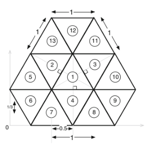 Pertimbangkan mesh yang terdiri dari elemen segitiga sama sisi yang ditunjukkan dalam Gambar 9.24. Koordinat titik-titik mesh adalah seperti yang ditunjukkan. Suhu di pusat sel diberikan oleh