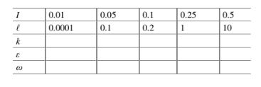 Diberikan intensitas turbulen dan skala panjang integral berikut, hitung nilai k – ω − ε yang sesuai (Tabel 17.1):